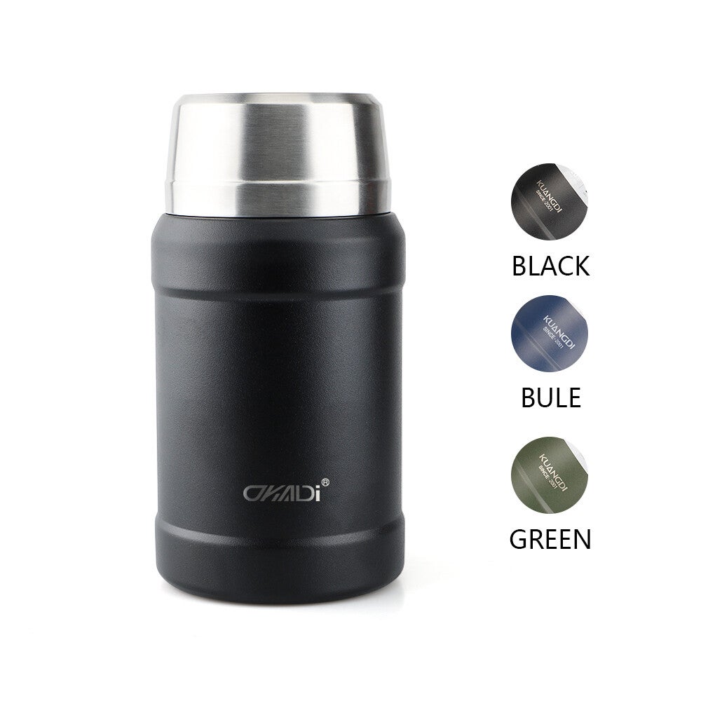Stainless steel bottle, with vacuum seal, keeps water hot for 12 hours and cold for up to 24 hours.