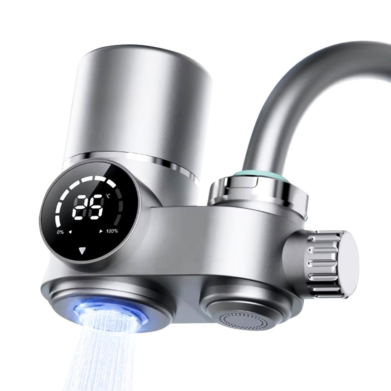 Filtro de agua digital inteligente UV para grifo, de funcionamiento manual y rápida instalación, que combina purificación UV y carbón activado, eliminando así los olores desagradables y los microcontaminantes, certificado RoHS.